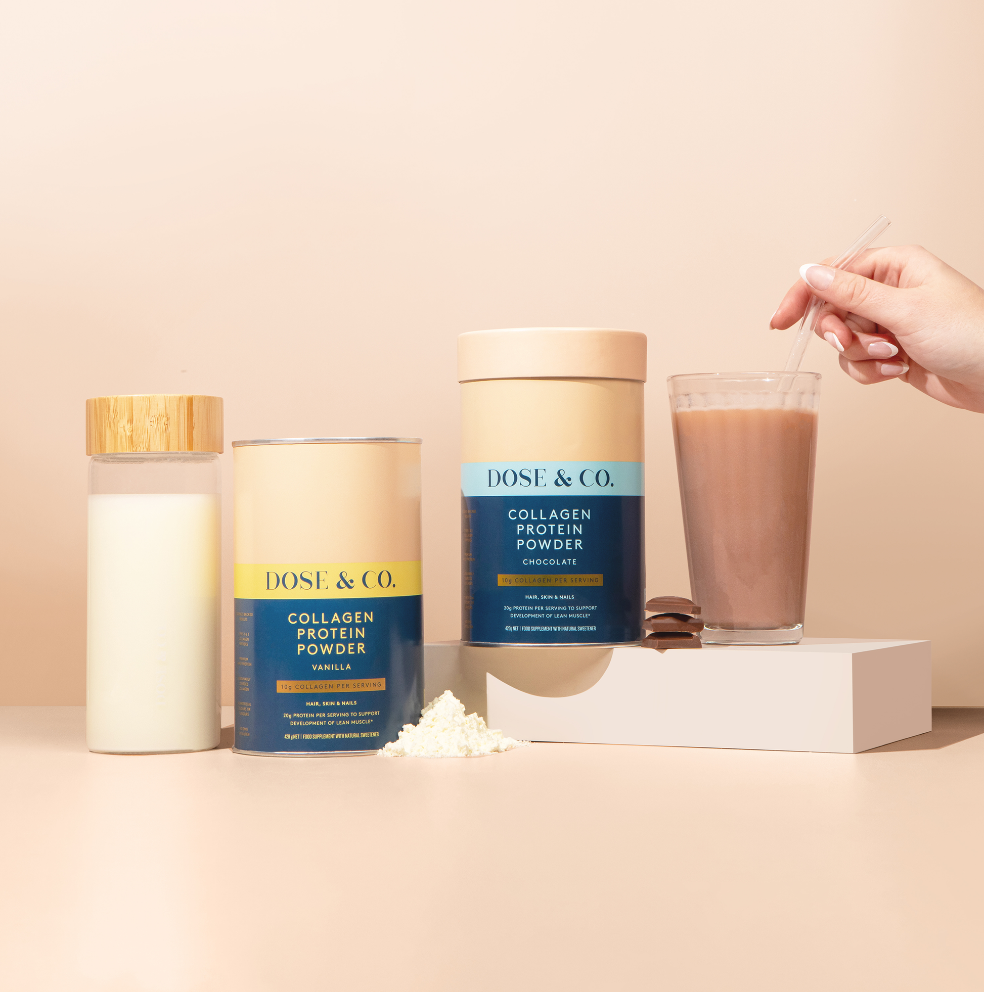 The collagen found in Dose & Co helps support the structural integrity of the skin's layers, leading to optimised skin tone and texture. Collagen’s ability to improve skin elasticity also helps give skin a more even appearance.